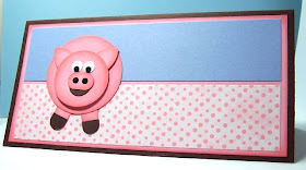 It's a long card that I cased from Tracy. Her card is absolutely adorable! It measures 8.5" by 4". I used kraft from PTI, and the patterned CS is from M (Just Chillin').